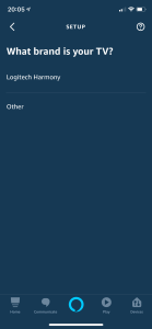 Scroll down to TV and choose Logitech Harmony.
